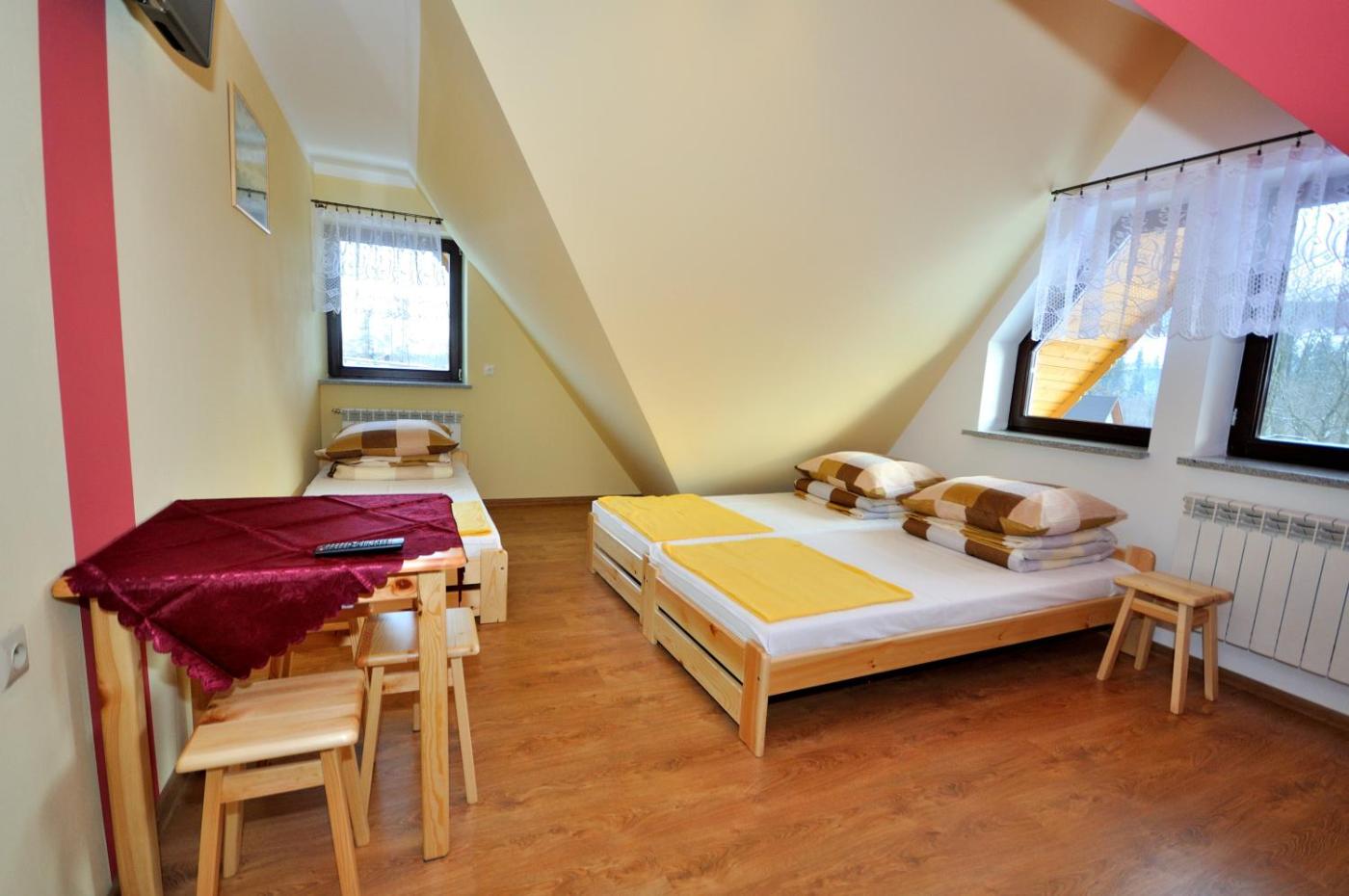Pokój Czteroosobowy. The quadruple room features parquet floors, heating, as well as a private bathroom featuring a shower and a hairdryer. The quadruple room offers a flat-screen TV with satellite channels, a wardrobe, a barbecue, a high chair for children as well as garden views. The unit offers 4 beds. Pokój Czteroosobowy - 4 osobowy. Powierzchnia pokoju ok.: 17 mkw. ;